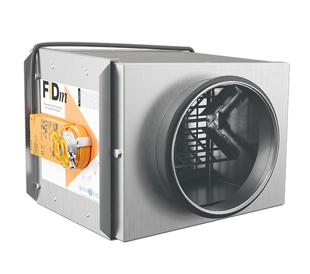 FIDm is a self-acting back draught damper designed to prevent the spread of combustion gases via the intake air system in ventilation systems. FIDm is equipped with an actuator and is suitable for systems where you adjust the ventilation as required.